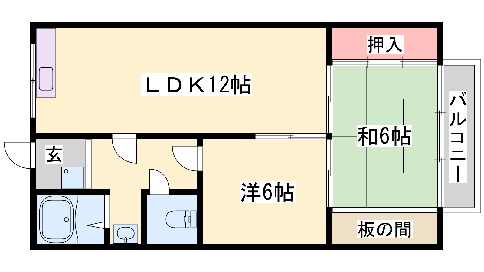 - LDK12帖、洋室6帖、和室6帖
