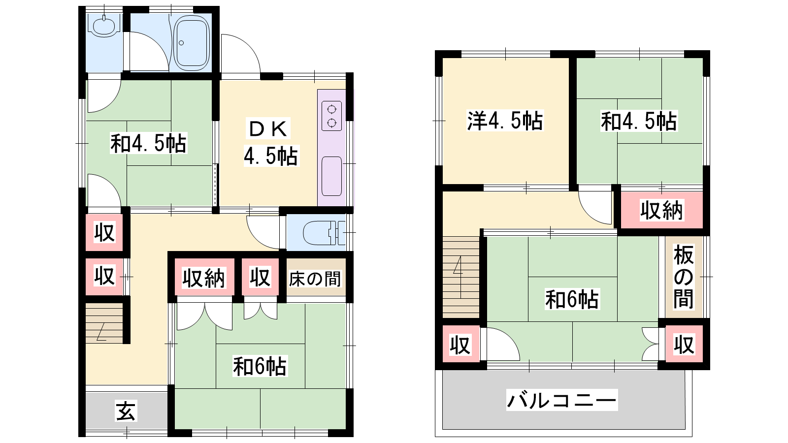 - 和室6帖、和室6帖、K4.5帖、和室4.5帖、洋室4.5帖、洋室4.5帖