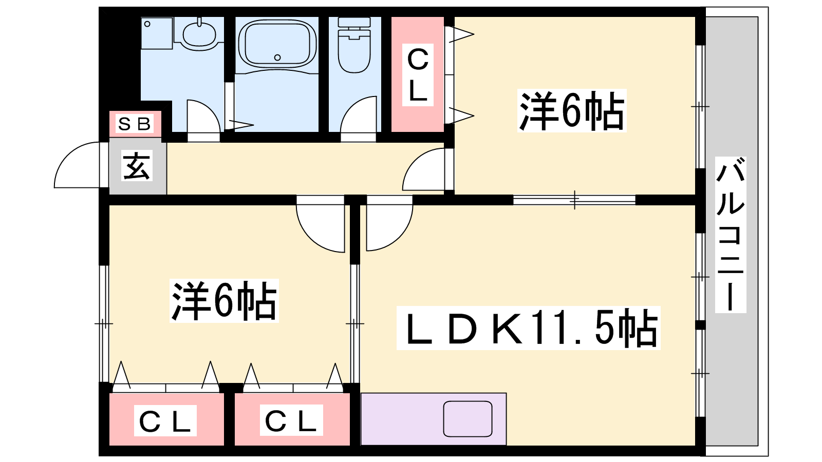 - LDK11.5帖、洋室6帖、洋室6帖