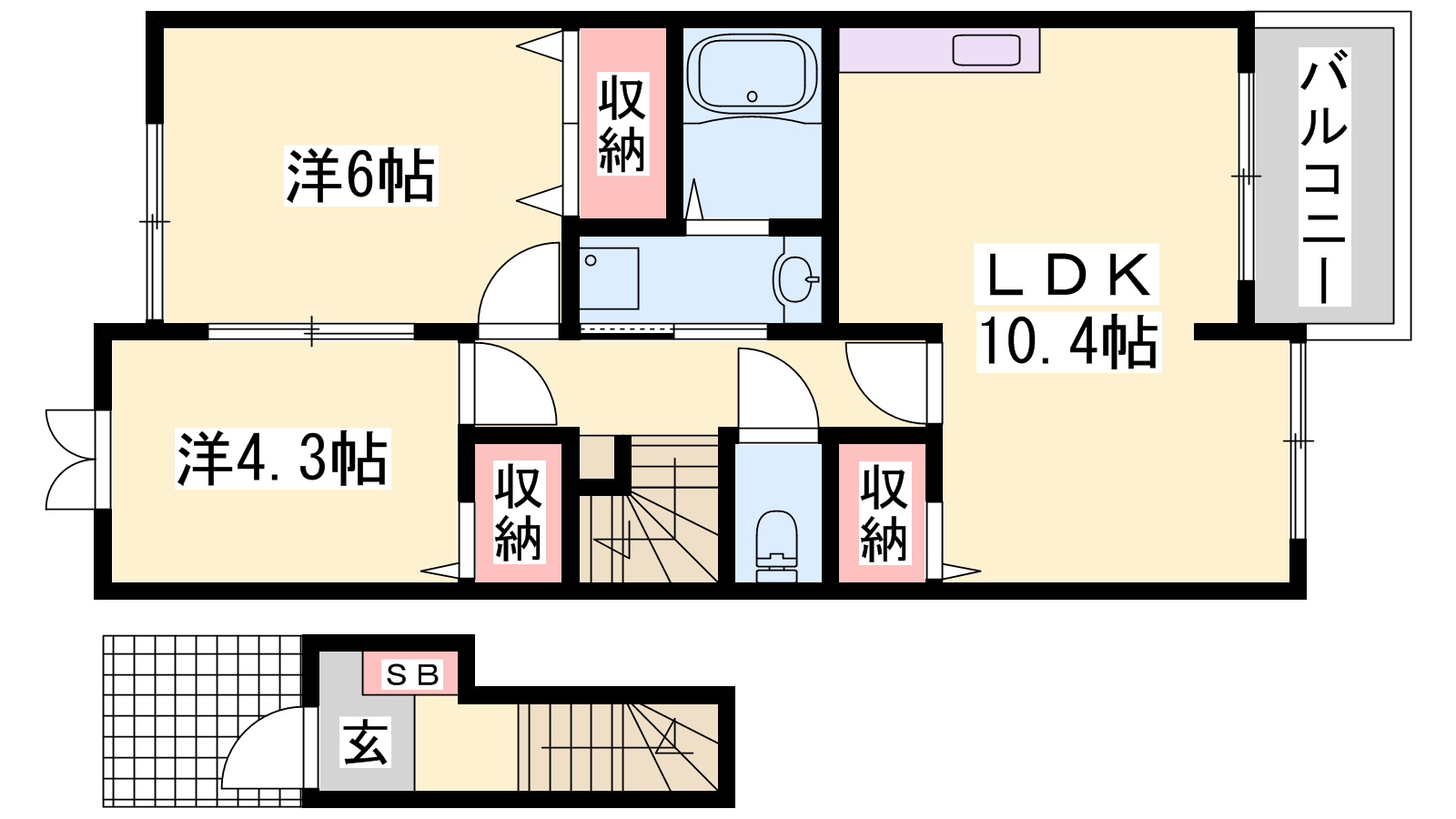 - LDK10.3帖、洋室6帖、洋室4.3帖