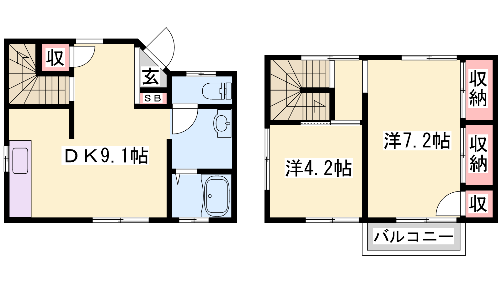 - DK9.1帖、洋室7.2帖、洋室4.2帖