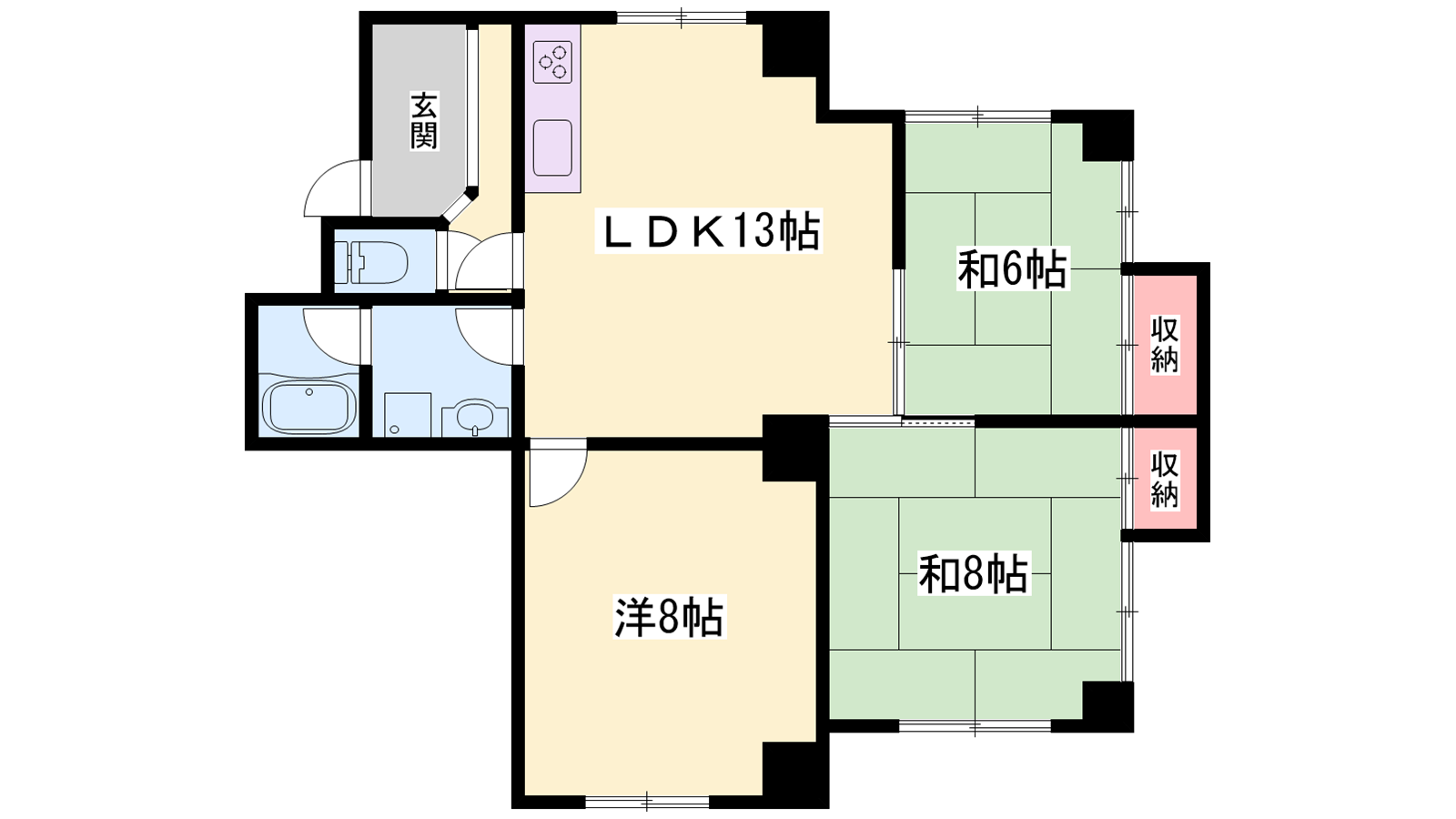 - LDK13帖、洋室8帖、和室8帖、和室6帖