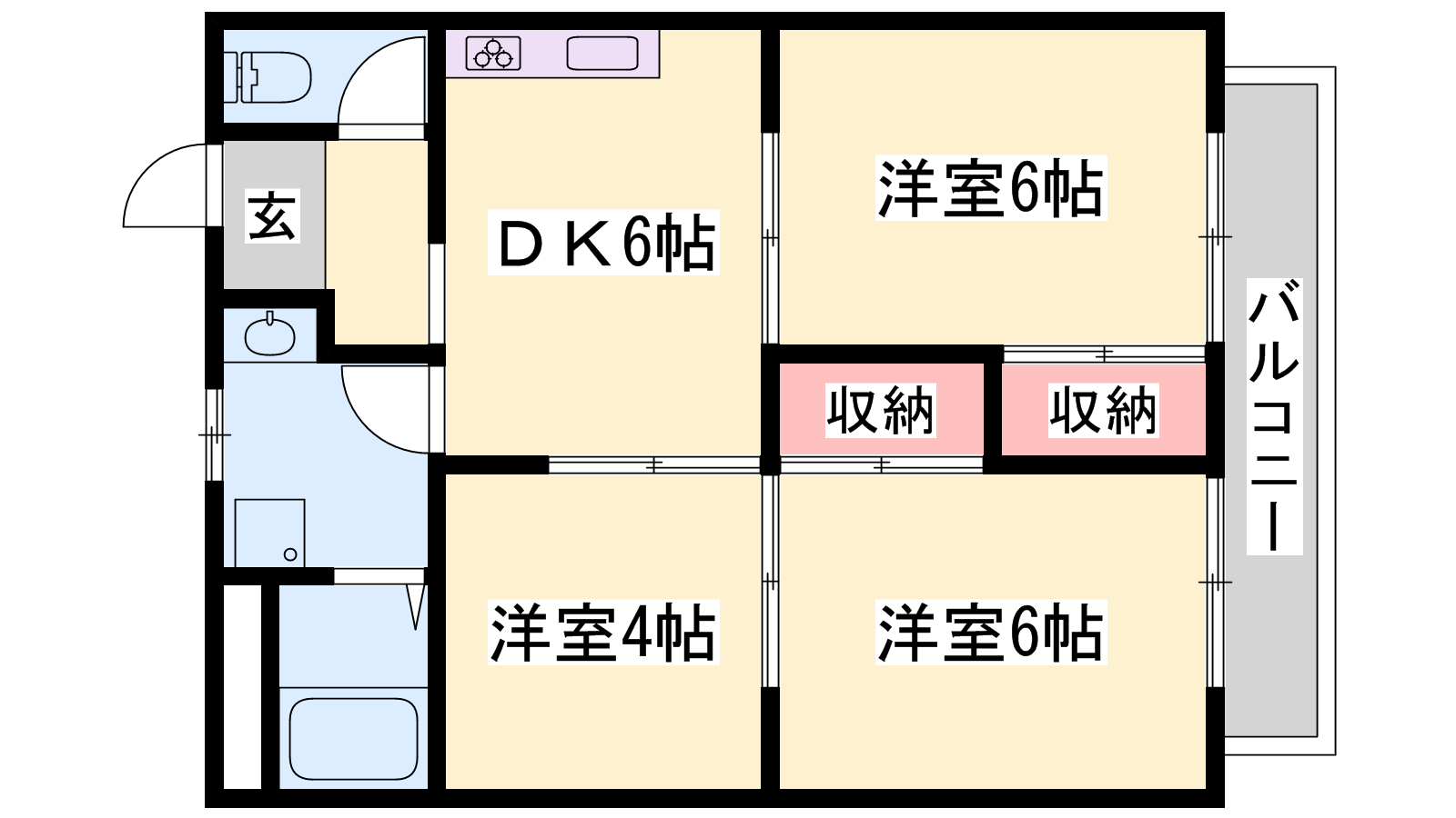 - DK6帖、洋室6帖、洋室6帖、洋室4帖