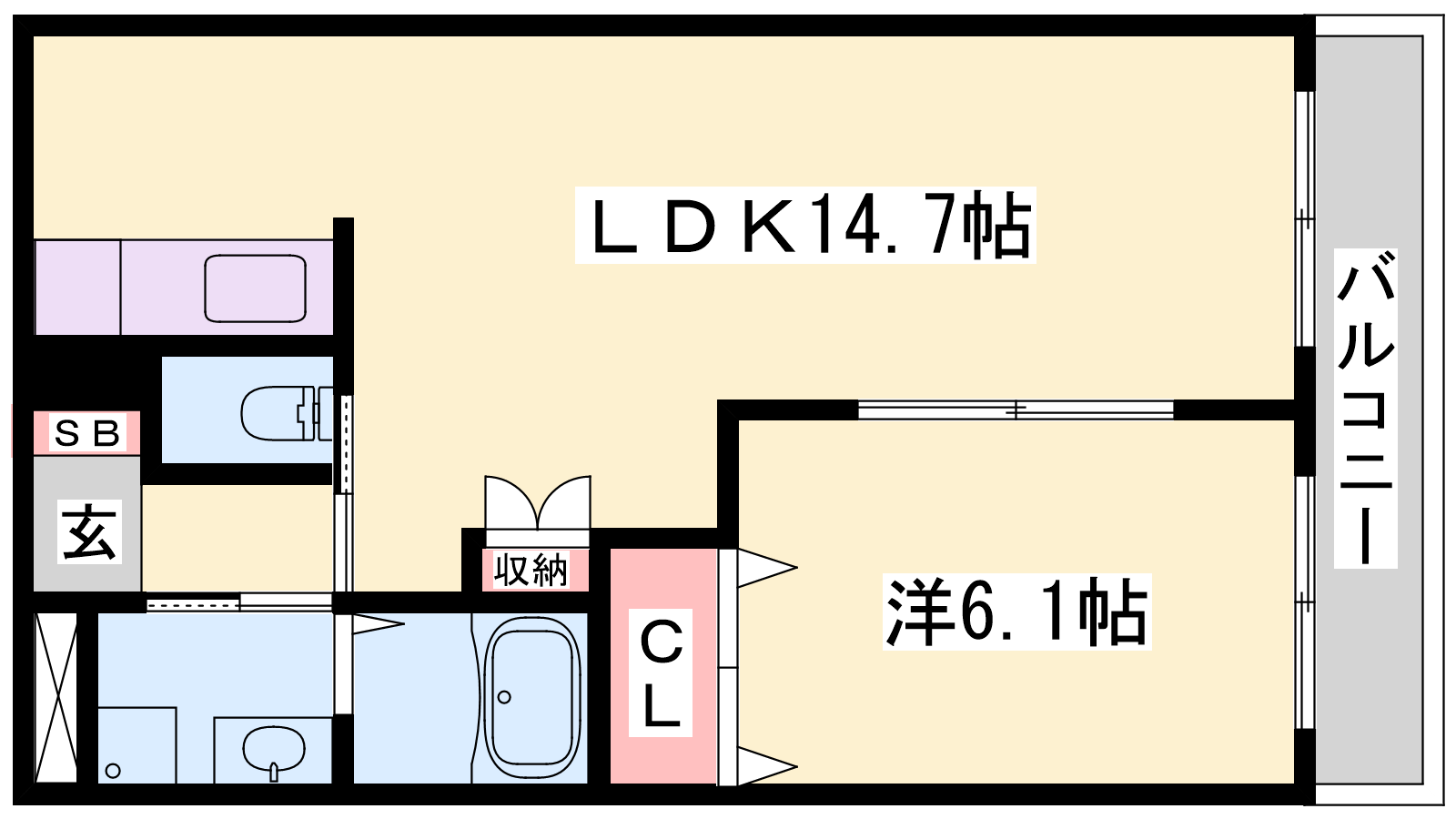 - LDK14.7帖、洋室6.1帖