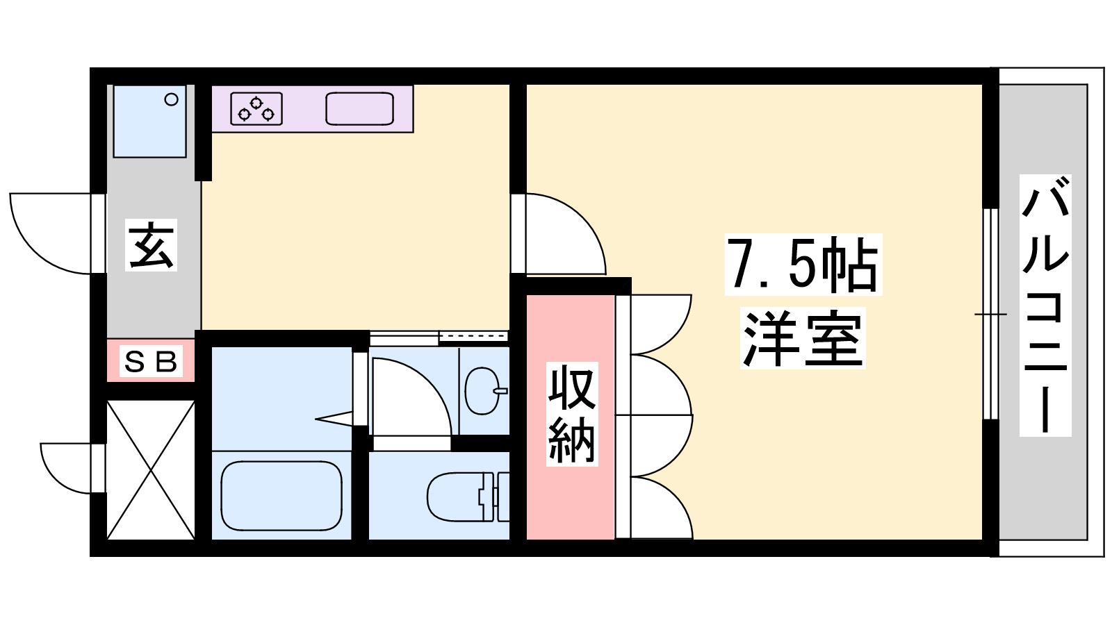 - K2帖、洋室7.5帖