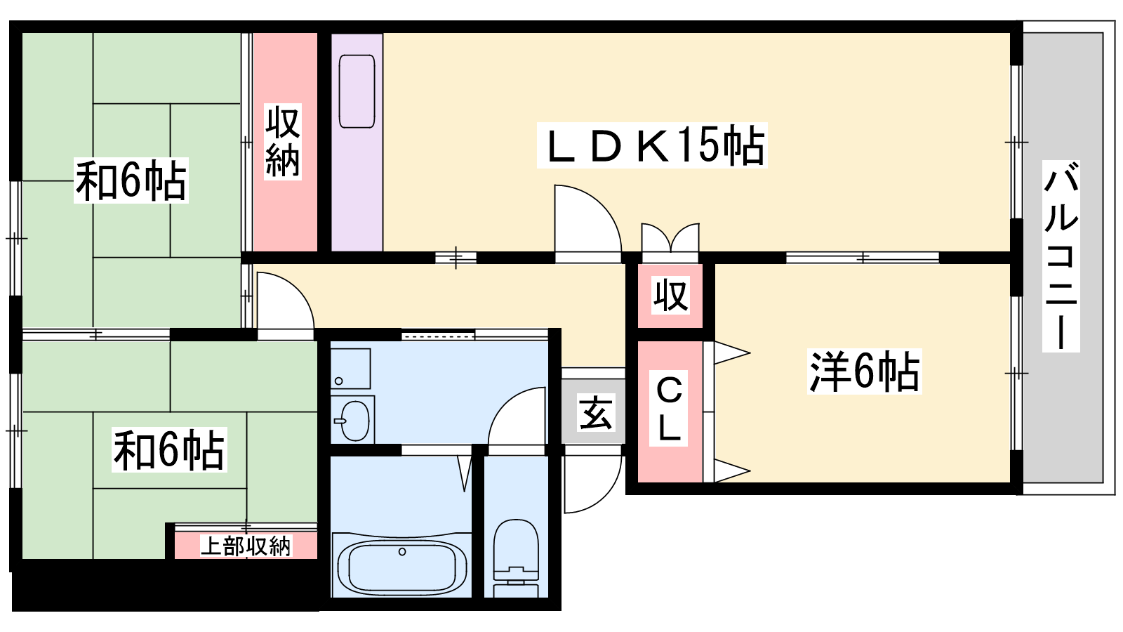 - LDK15帖、洋室6帖、和室6帖、和室6帖