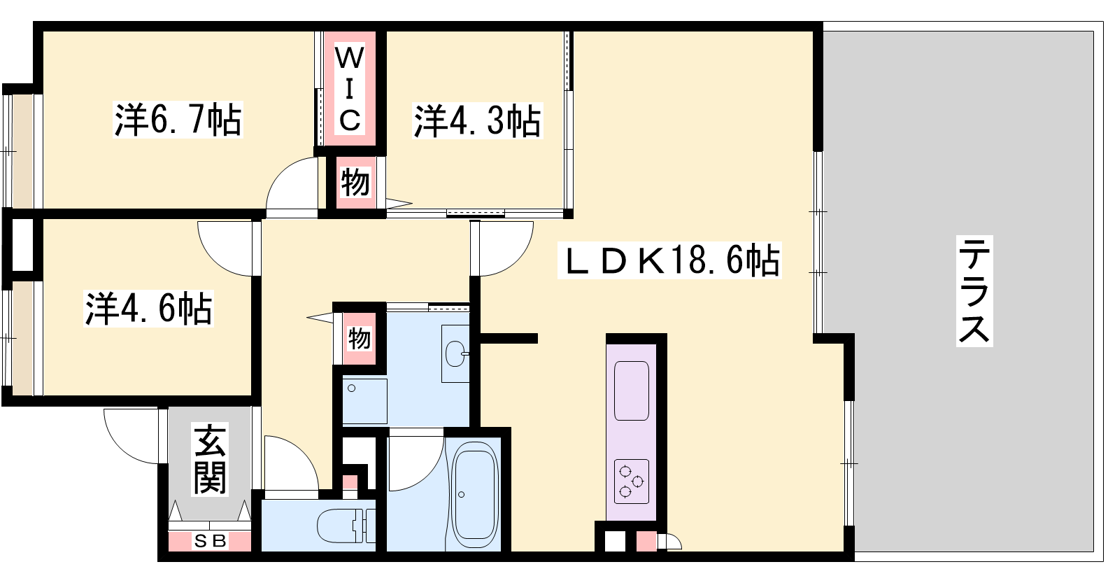 - LDK18.6帖、洋室6.7帖、洋室4.6帖、洋室4.3帖
