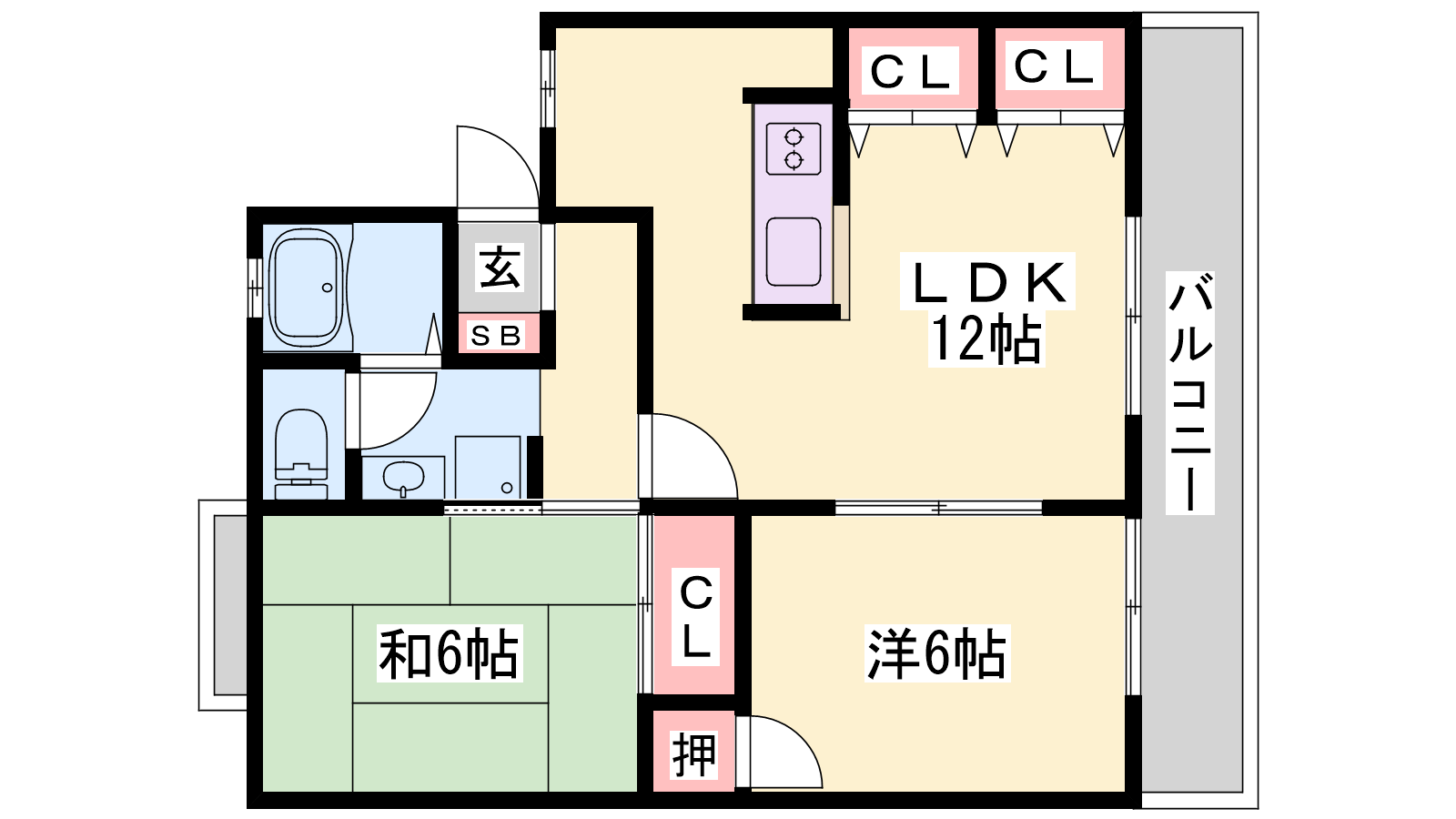 - LDK12帖、洋室6帖、和室6帖
