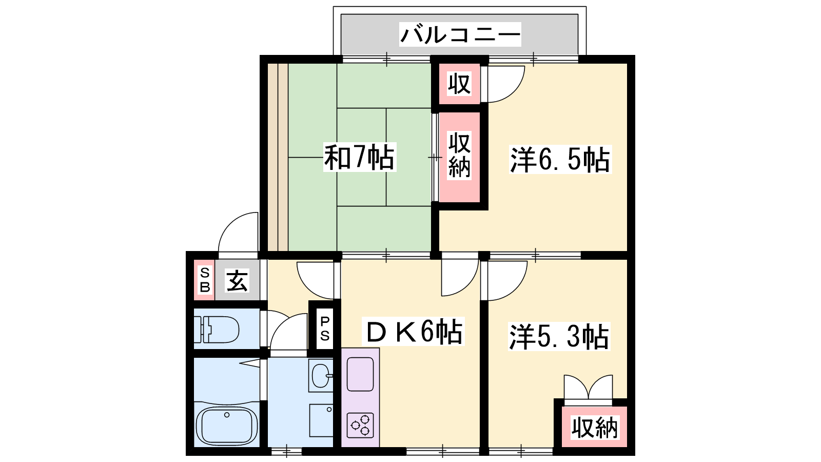 - DK6帖、洋室6.5帖、洋室5.25帖、和室7帖