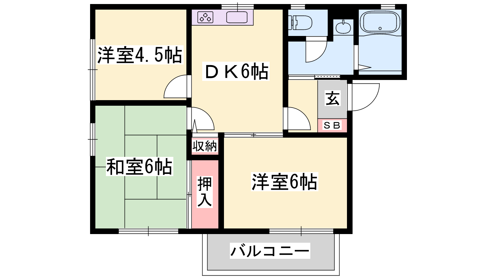 - K5.7帖、洋室5.8帖、洋室4.4帖、和室6.1帖