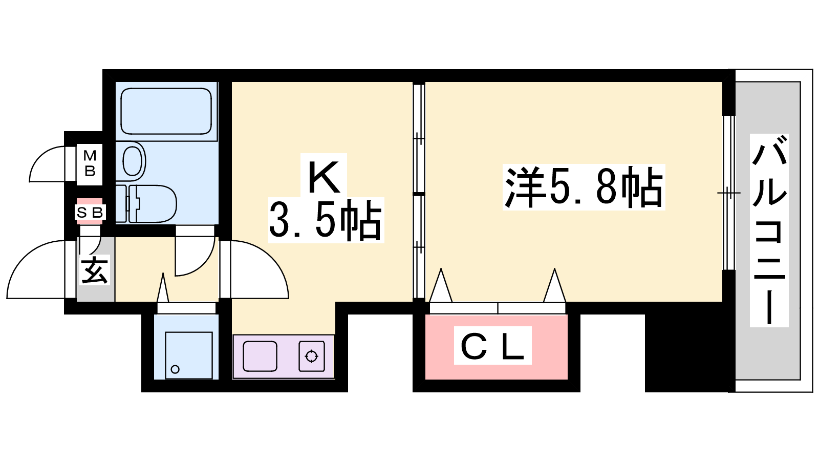 - K3.5帖、洋室5.8帖