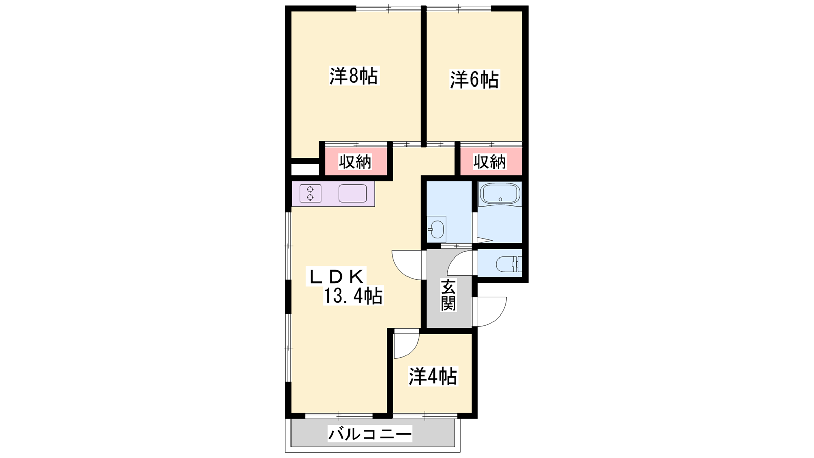 - LDK13.4帖、洋室8帖、洋室6帖、洋室4帖