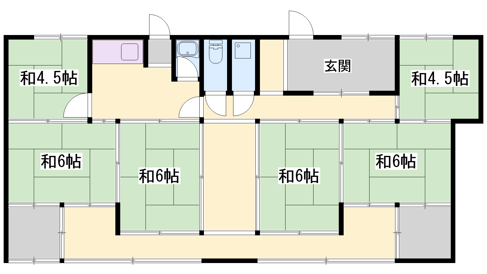 - DK4.8帖、和室6帖、和室6帖、和室6帖、和室6帖、和室4.5帖、和室4.5帖