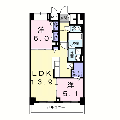 - LDK13.9帖、洋室6帖、洋室5.1帖