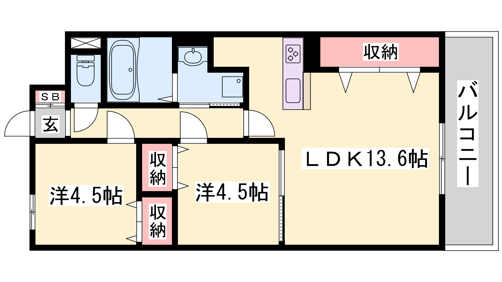- LDK13.6帖、洋室4.5帖、S4.5帖