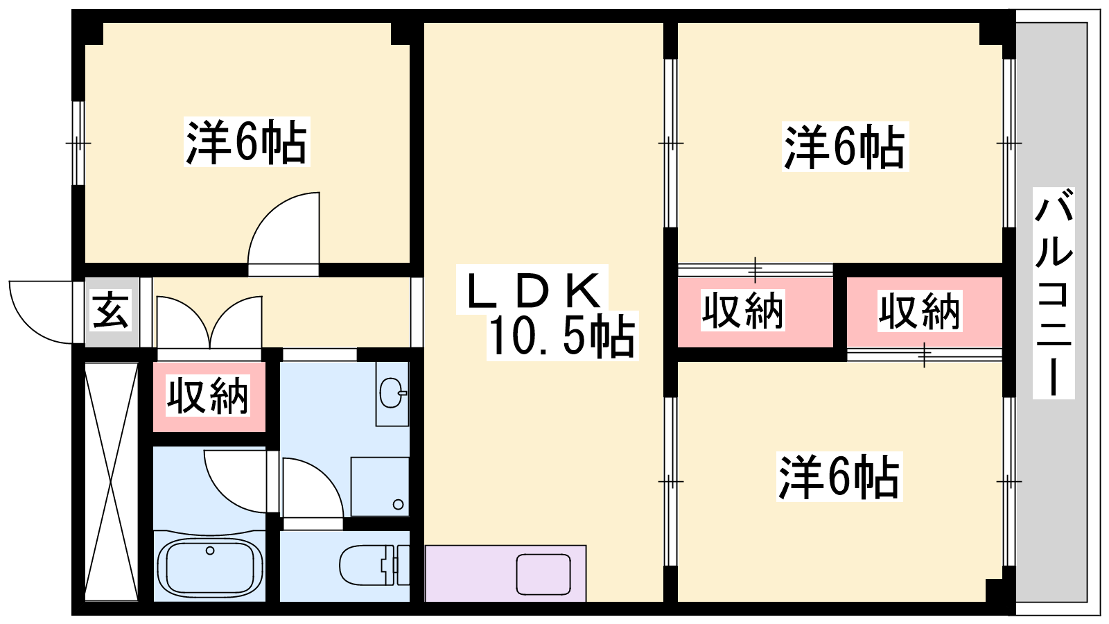 - LDK10.5帖、洋室6帖、洋室6帖、洋室6帖