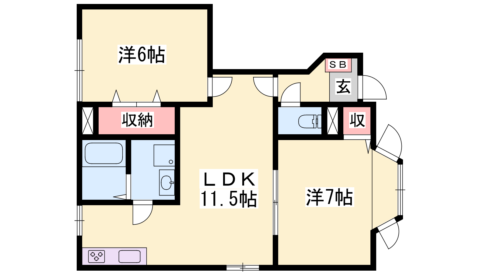- LDK11.5帖、洋室7帖、洋室6帖