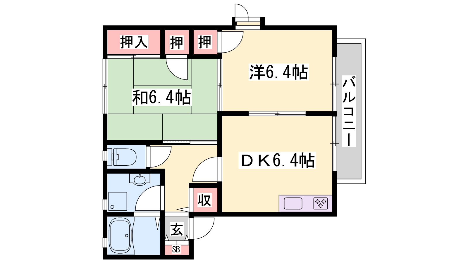 - DK6.4帖、和室6.4帖、和室6.4帖