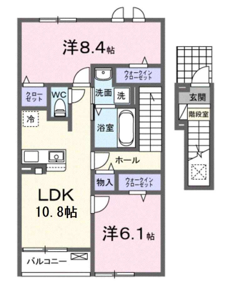 - LDK10.8帖、洋室8.4帖、洋室6.1帖