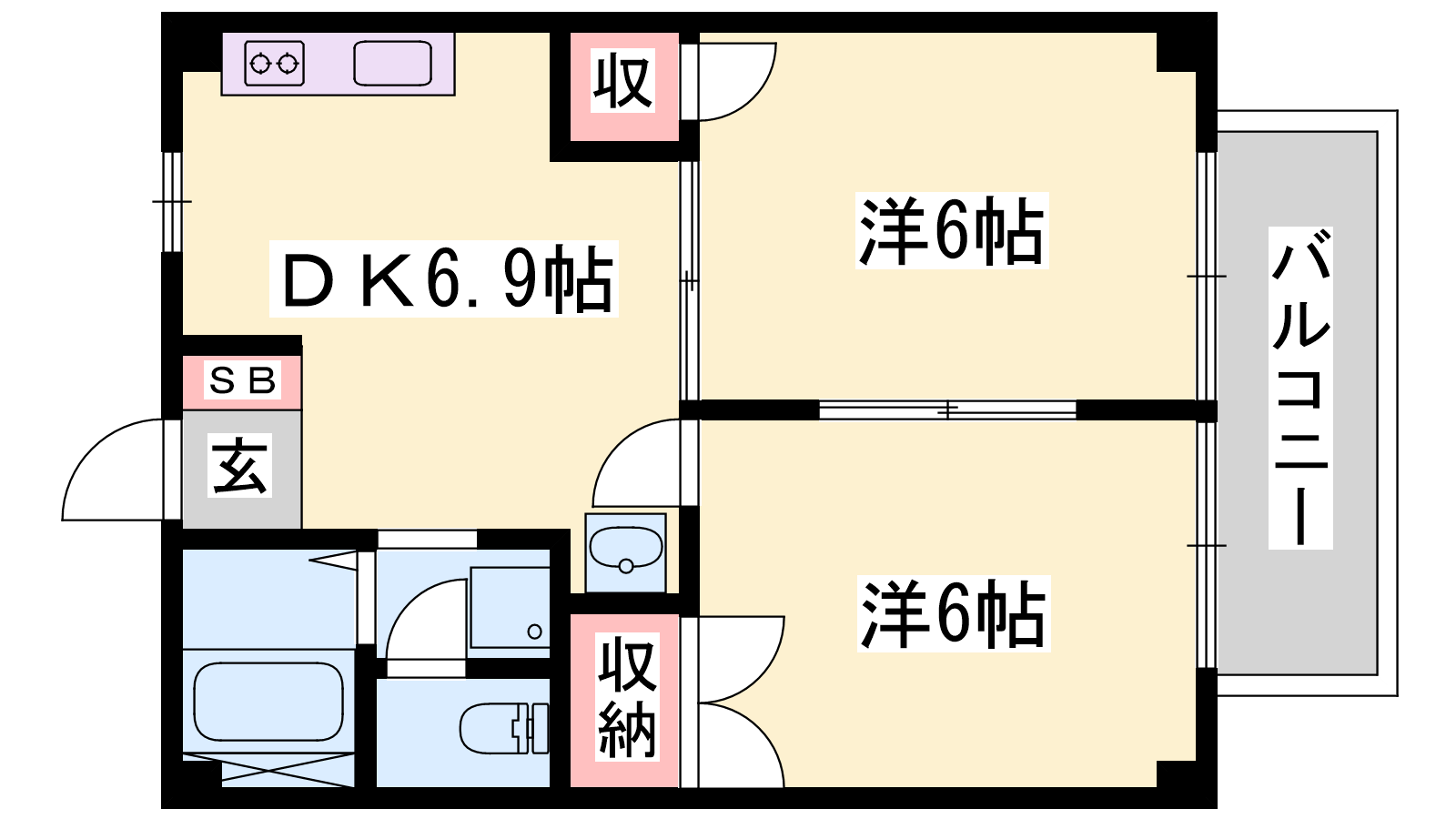 - DK6.9帖、洋室6帖、洋室6帖