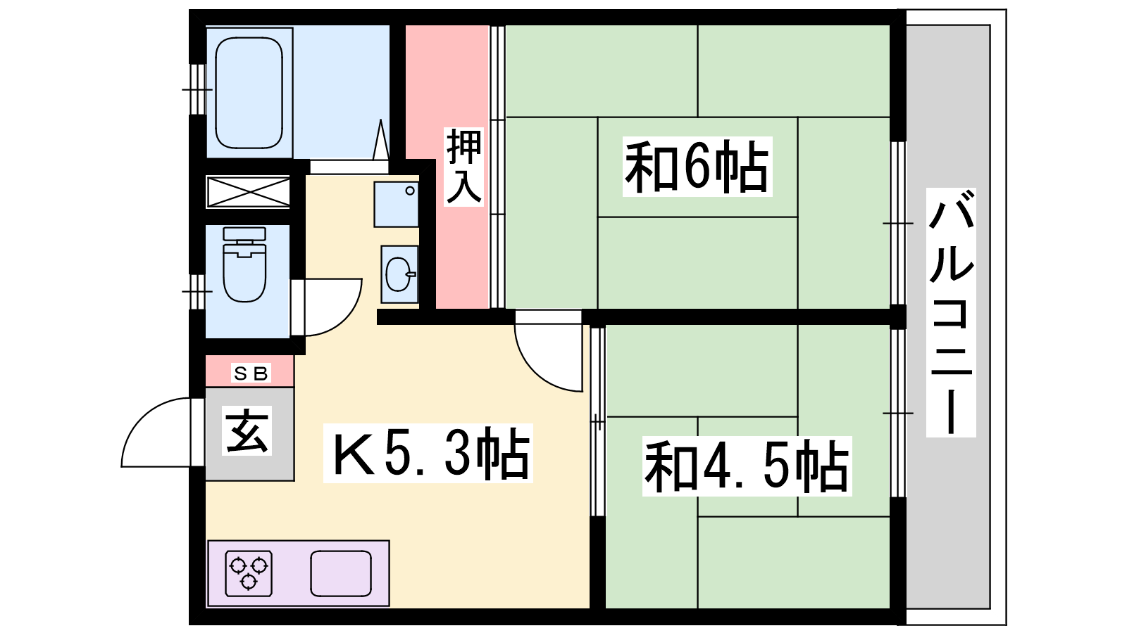 - K5.3帖、和室6帖、和室4.5帖