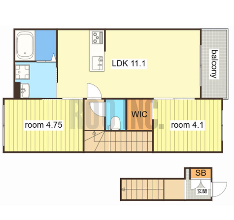 - LDK11帖、洋室4.75帖、洋室4.1帖