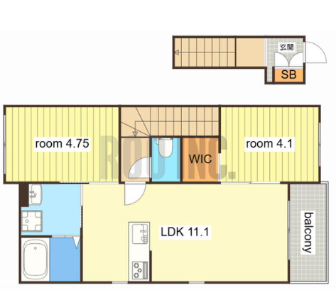 - LDK11帖、洋室4.75帖、洋室4.1帖