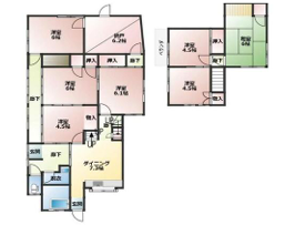 - DK7.3帖、洋室6.1帖、洋室6帖、洋室6帖、洋室4.5帖、洋室4.5帖、洋室4.5帖、和室6帖、S6.2帖