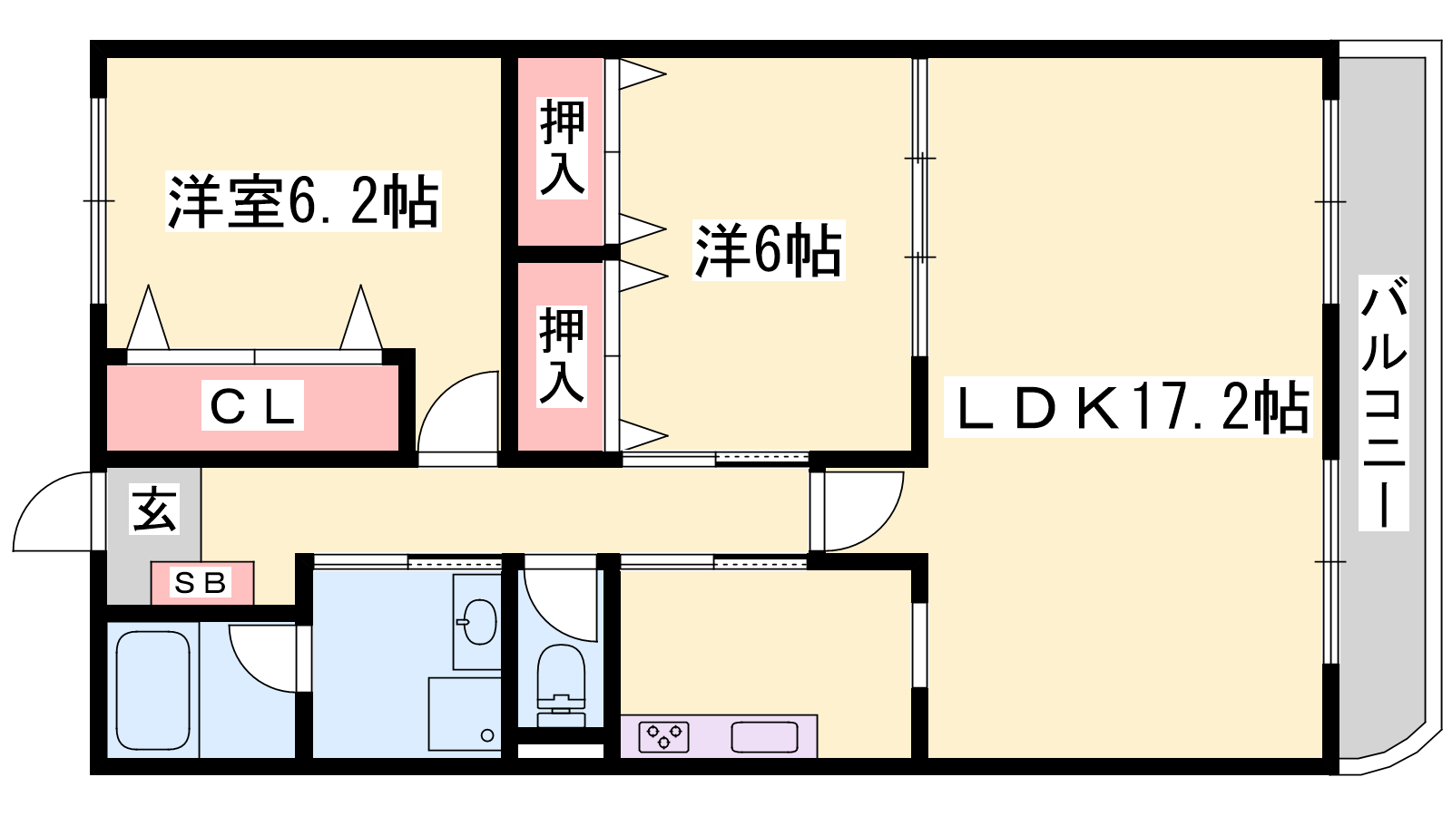 - LDK17.2帖、洋室6.2帖、洋室6帖