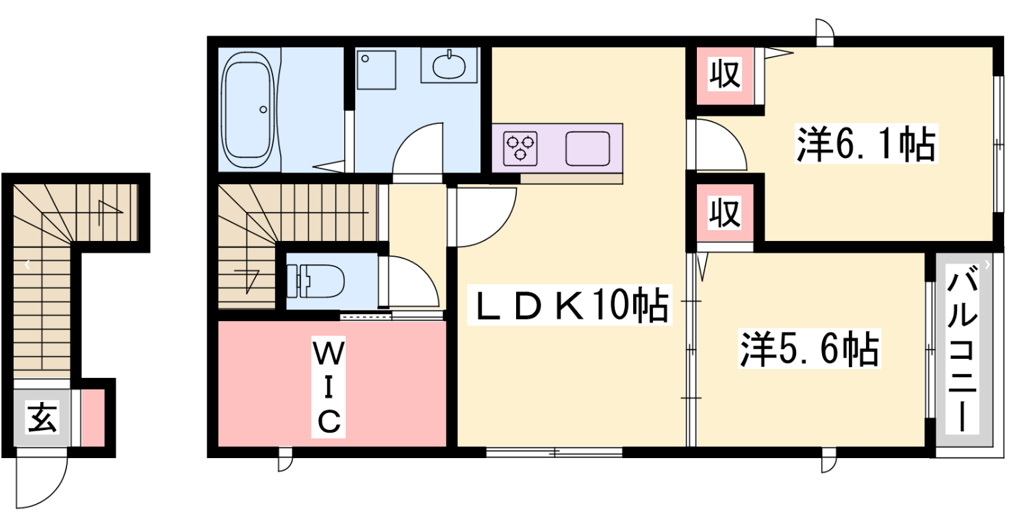 - LDK10帖、洋室6.1帖、洋室5.6帖