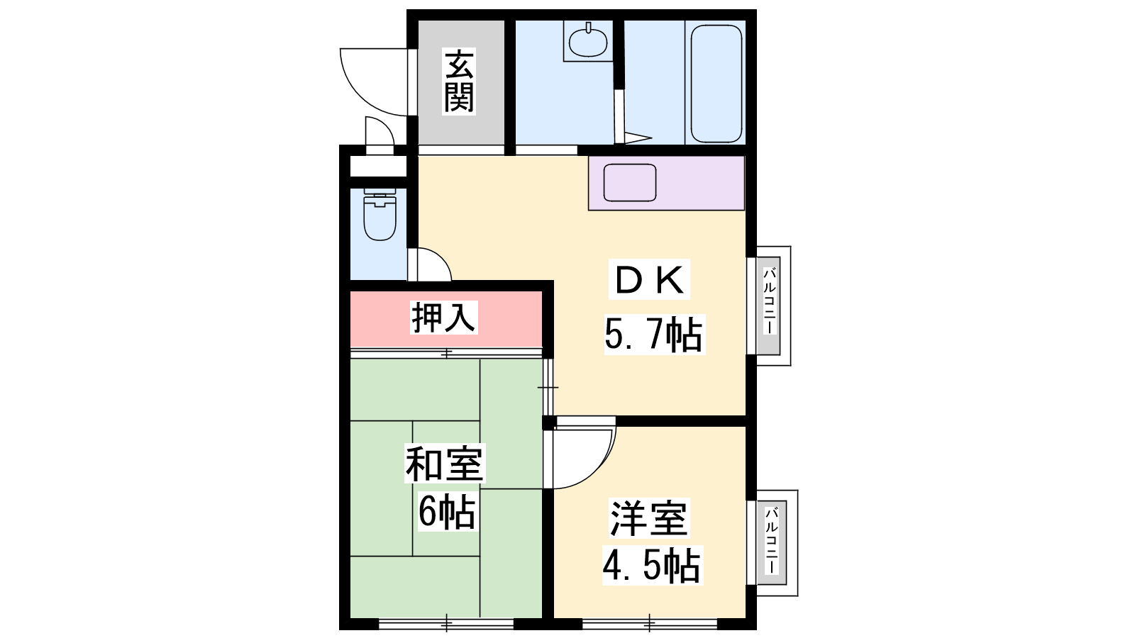- 洋室4.5帖、和室6帖、DK5.7帖