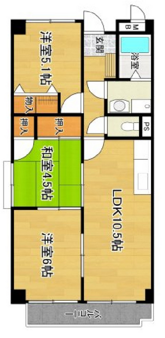 - LDK10.5帖、洋室6帖、洋室5.1帖、和室4.5帖