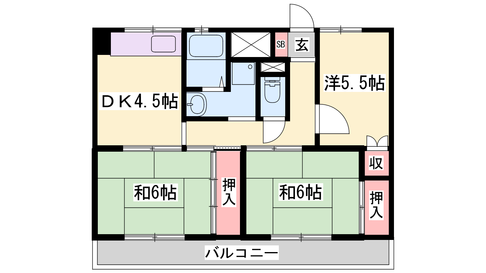 - DK4.5帖、洋室6帖、洋室6帖、洋室5.5帖