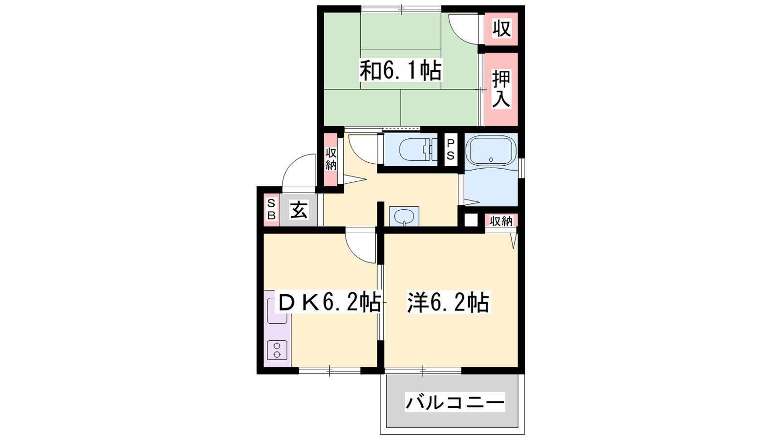 - DK6.2帖、洋室6.2帖、和室6.1帖