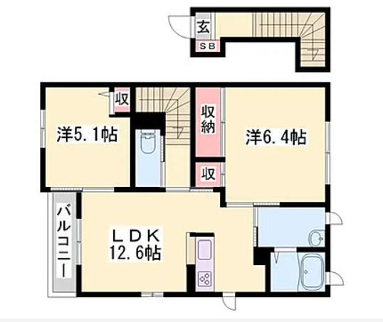 - LDK12.6帖、洋室6.4帖、洋室5.1帖