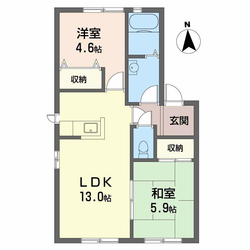 - LDK13帖、洋室4.6帖、和室5.9帖