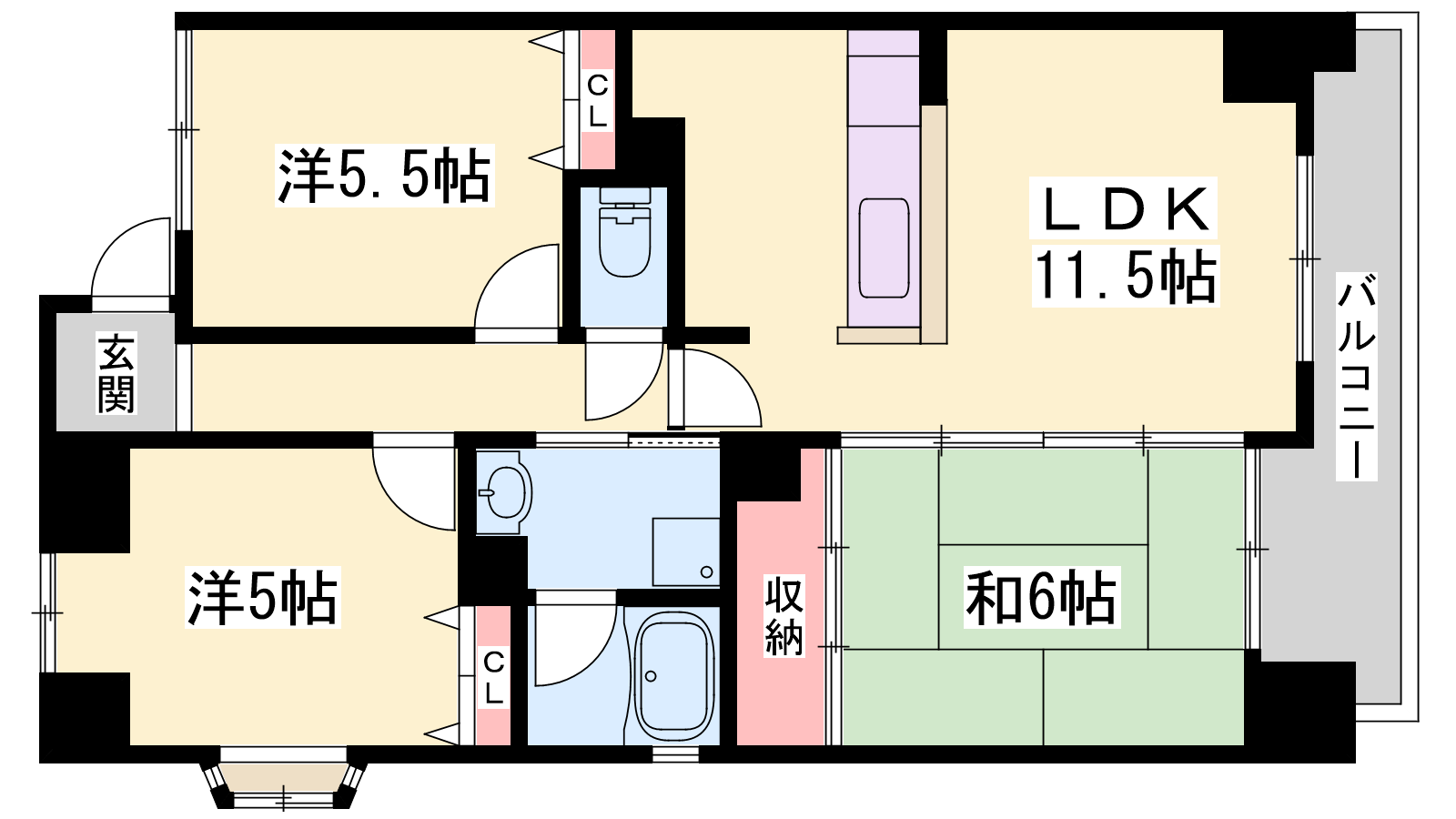 - LDK11.5帖、洋室5.5帖、洋室5帖、和室6帖