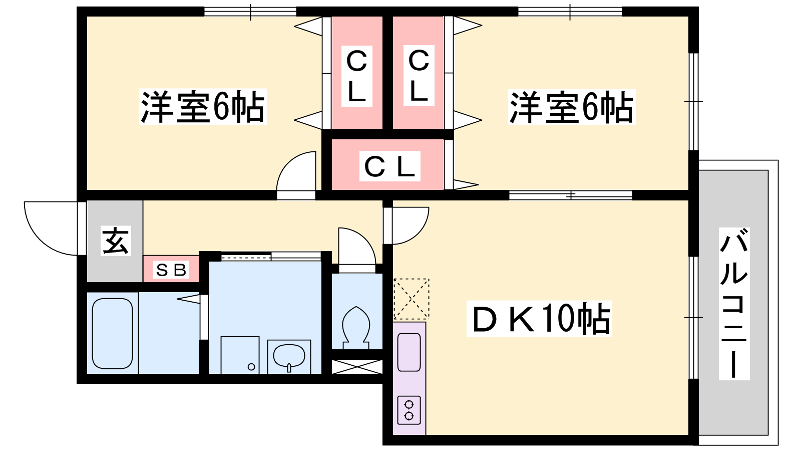 - LDK10帖、洋室6帖、洋室6帖