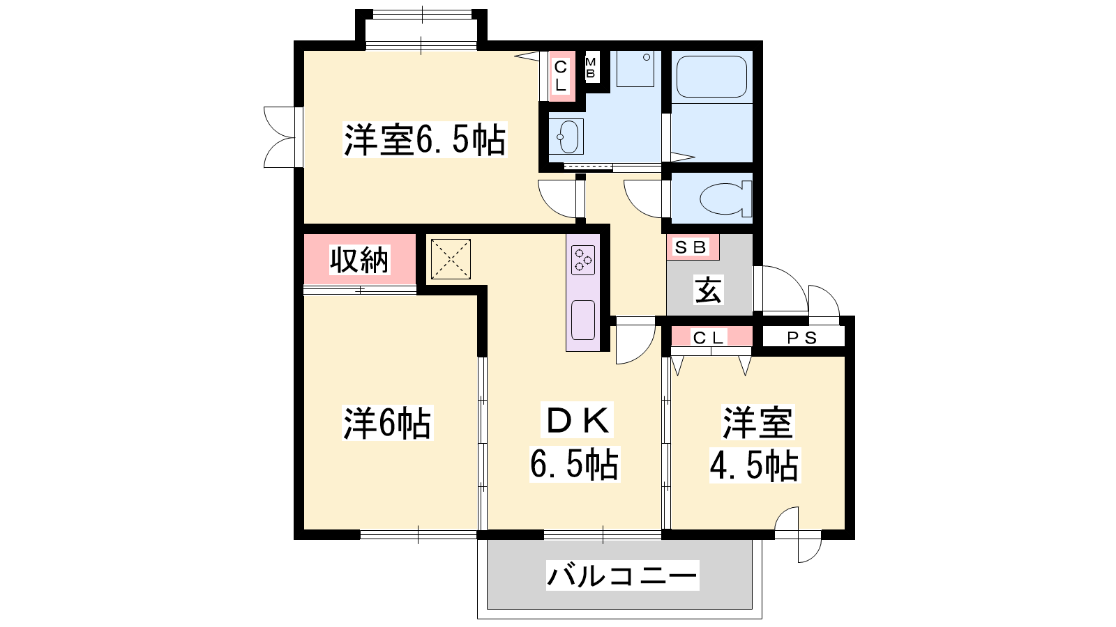 - DK6.5帖、洋室6.5帖、洋室4.5帖、洋室6帖
