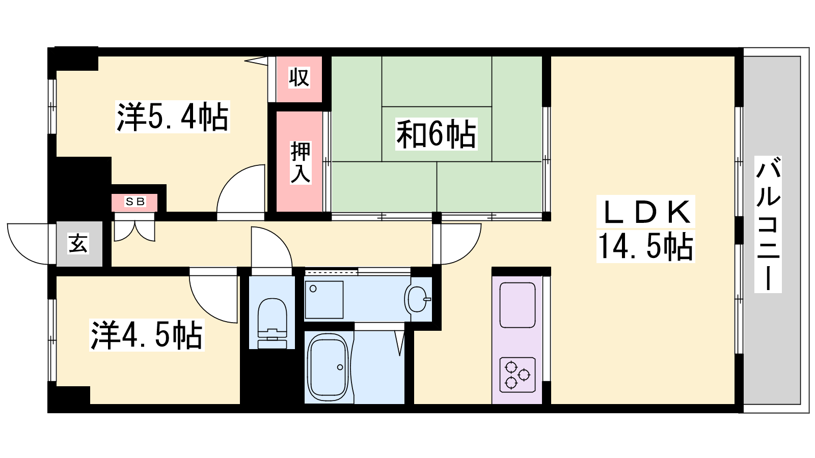 - LDK14.5帖、和室6帖、洋室5.4帖、洋室4.5帖