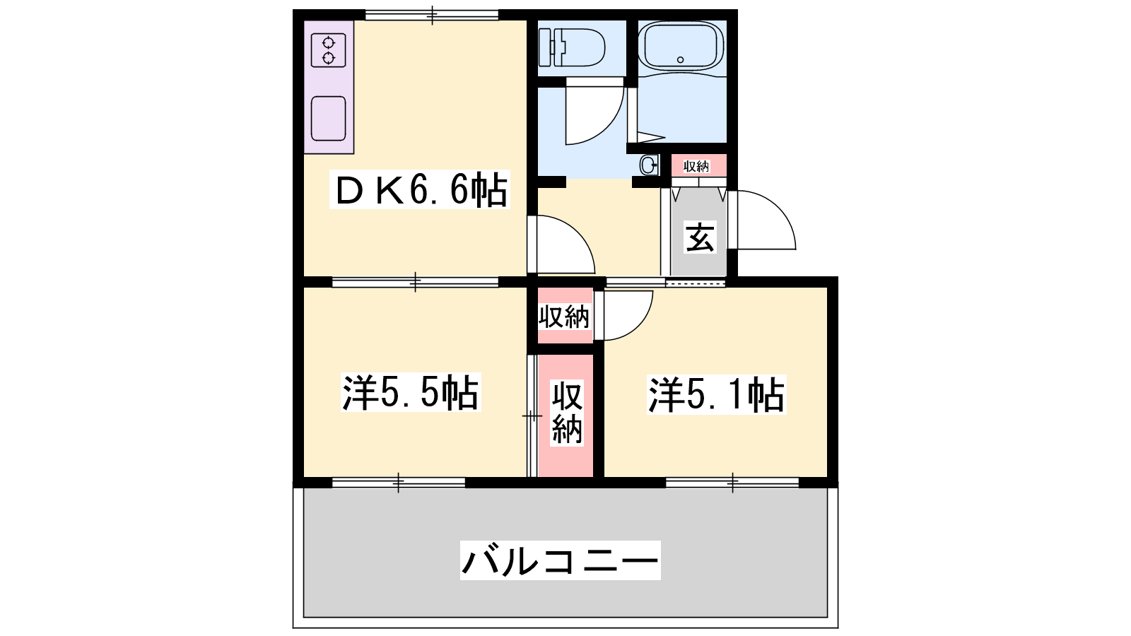 - K5.5帖、和室6.6帖、洋室6.4帖
