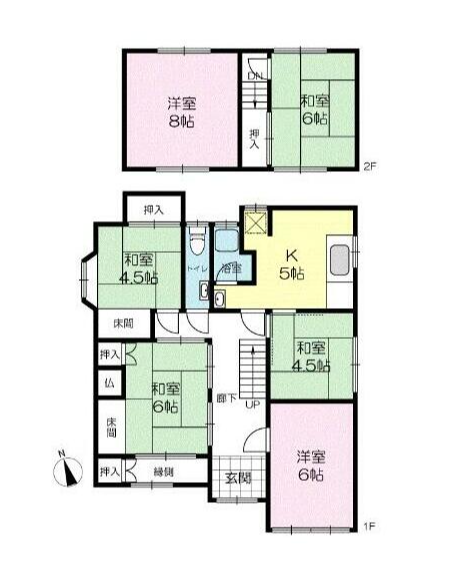 - 和室6帖、和室6帖、和室4.5帖、和室4.5帖、洋室8帖、洋室6帖、DK5帖
