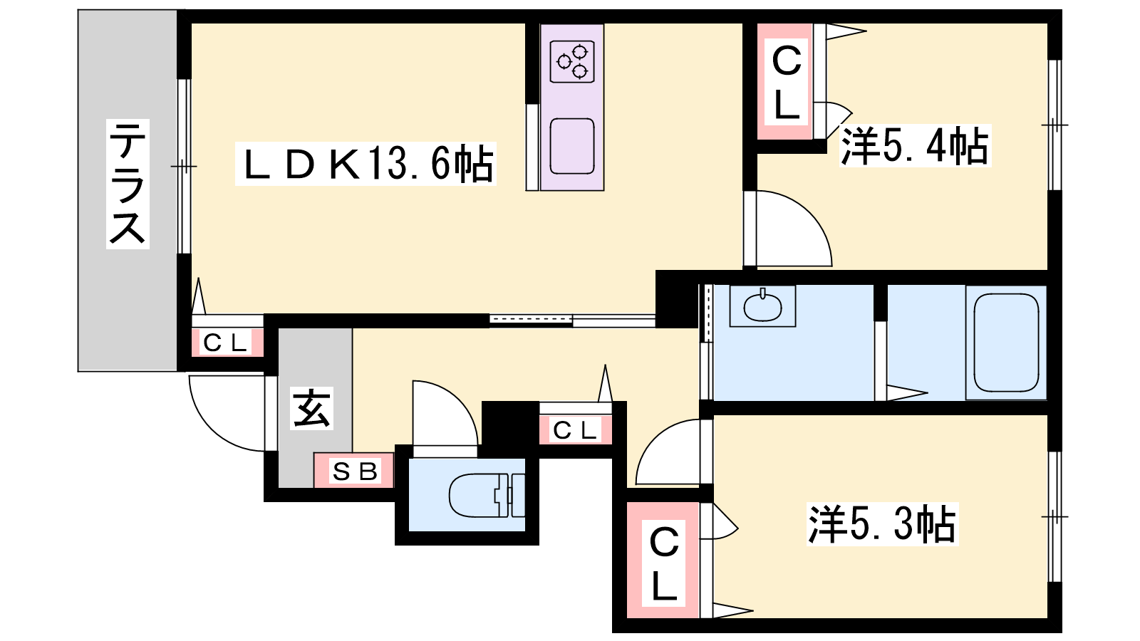 - LDK13.6帖、洋室5.4帖、洋室5.3帖