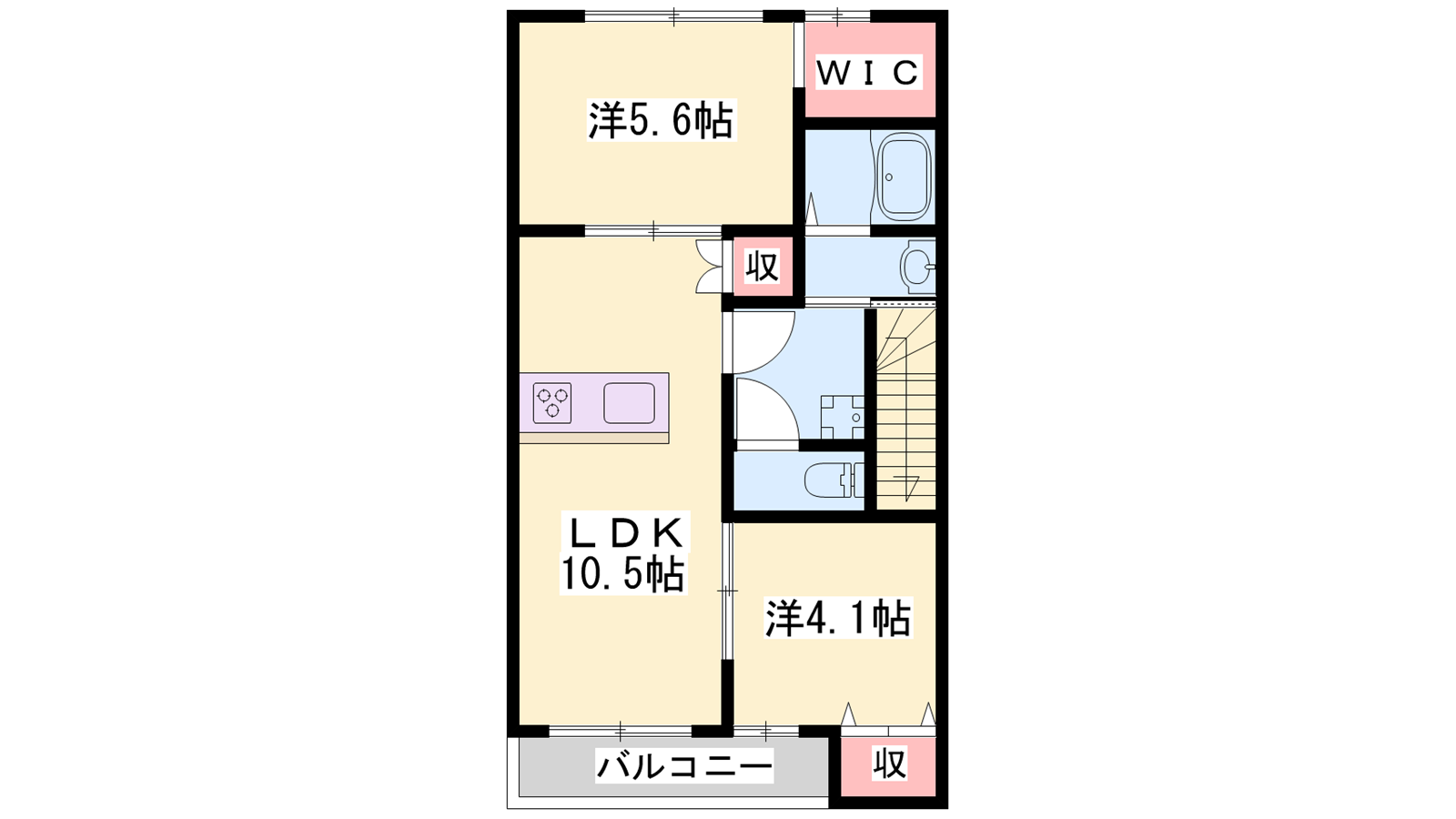 - LDK10.5帖、洋室5.6帖、洋室4.1帖