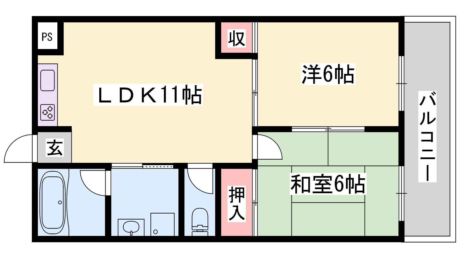 - LDK11帖、洋室6帖、和室6帖