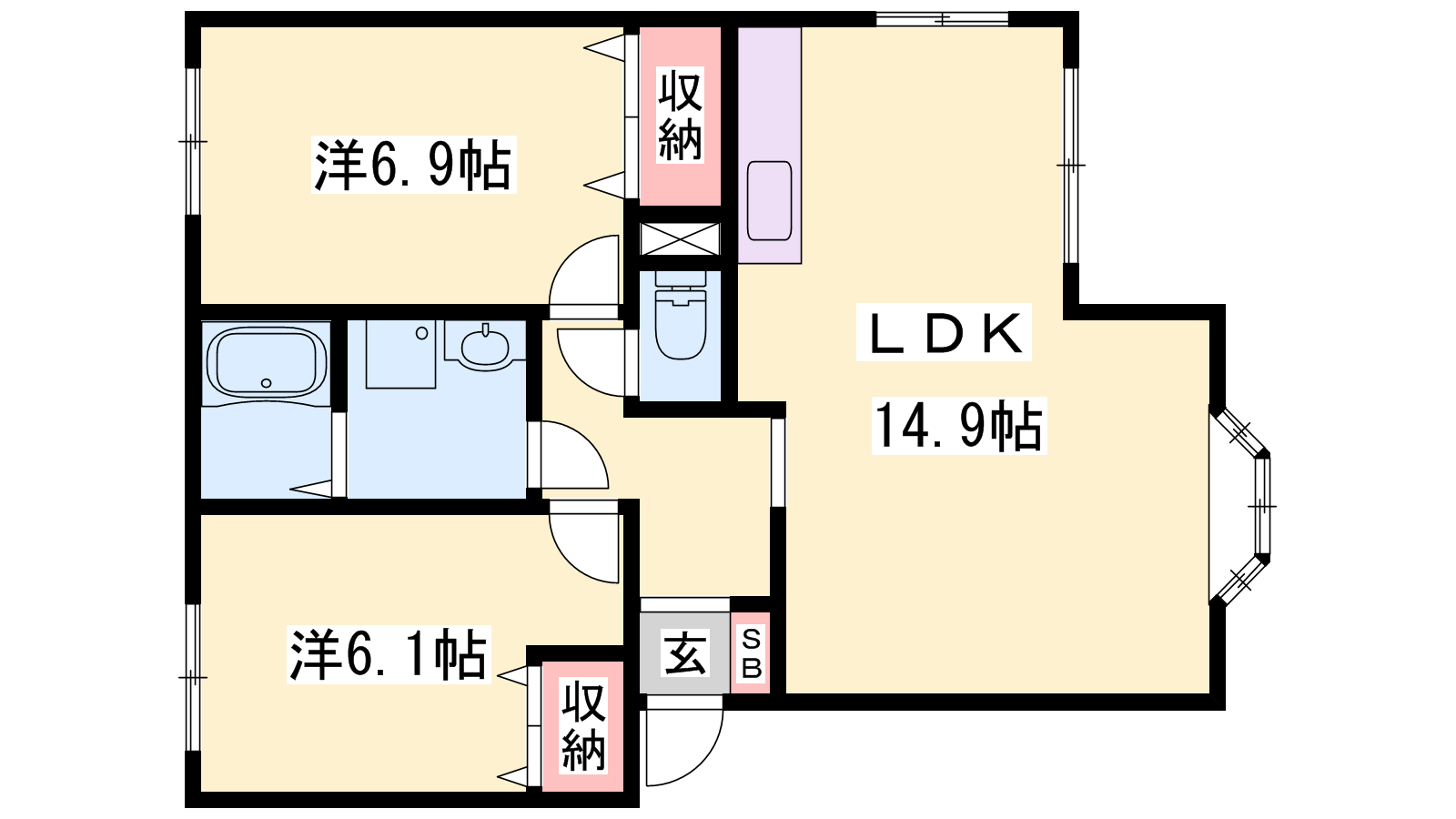 - DK14.9帖、洋室6.9帖、洋室6.1帖