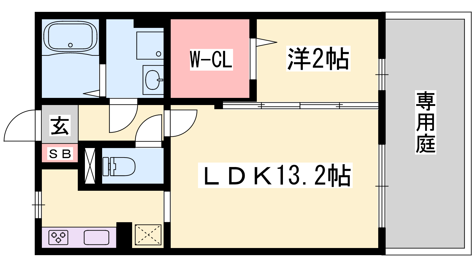 - LDK13.2帖、洋室2帖
