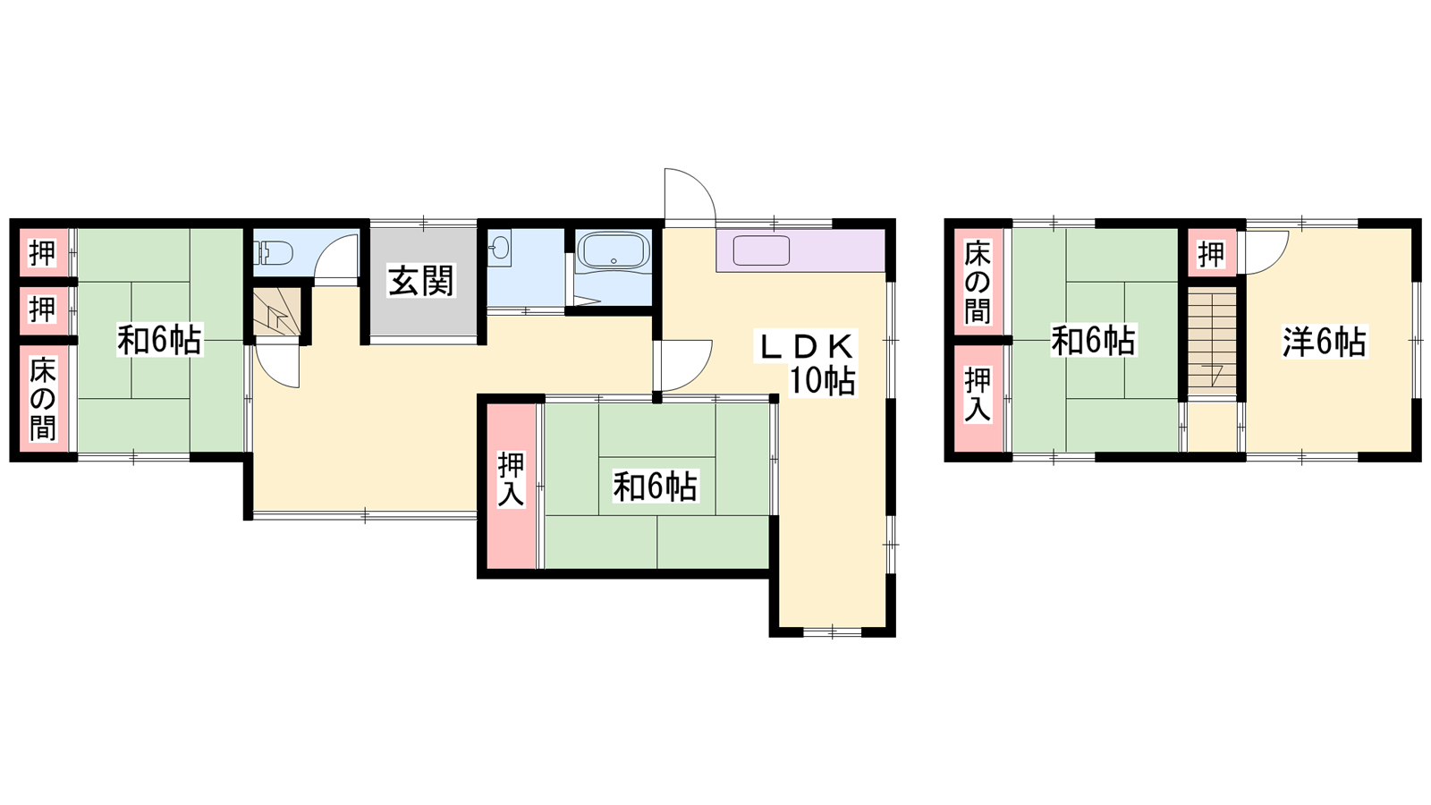 - LDK10帖、洋室6帖、和室6帖、和室6帖