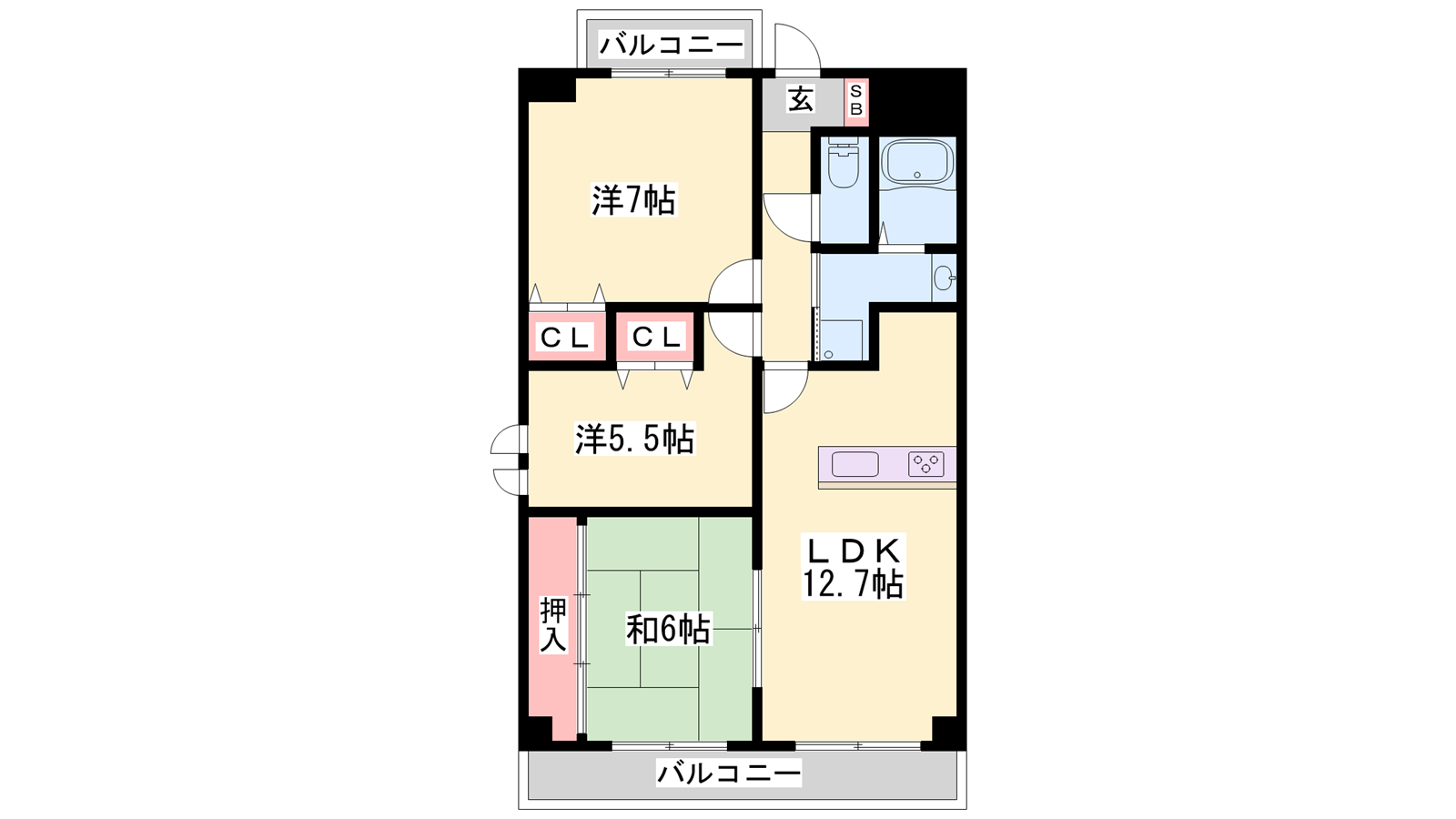 - LDK12.7帖、洋室7帖、洋室5.5帖、和室6帖