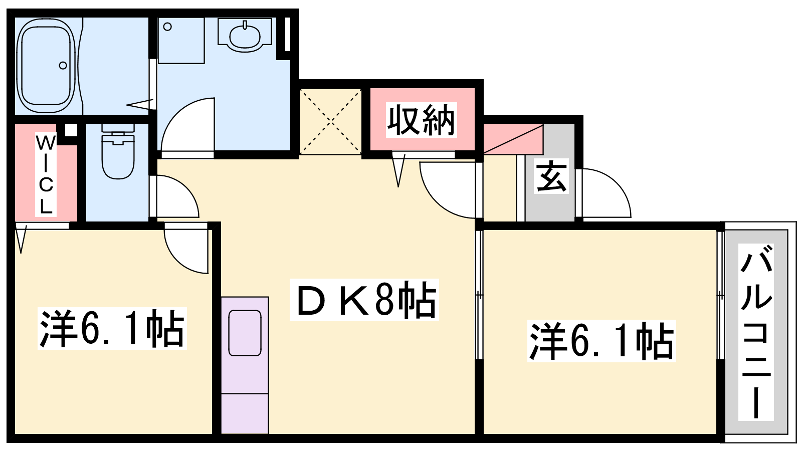 - DK8帖、洋室6.1帖、洋室6.1帖